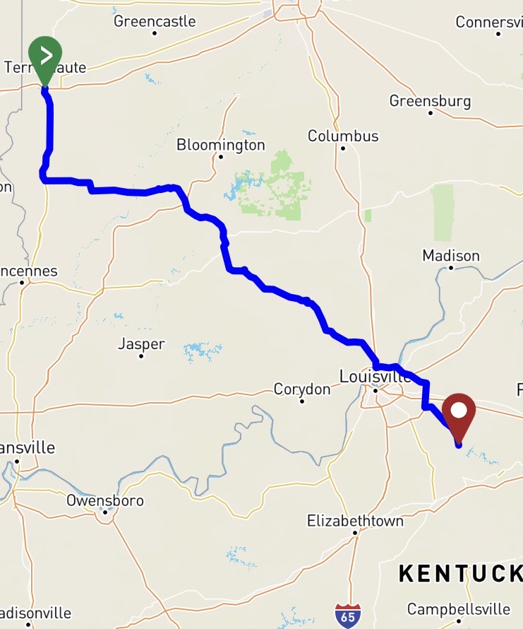 The fourth day of my cross country adventure started in Terra Haute, Indiana where I jumped on Highway 41 before working my way south on a series of state roads until I hit I-65 in southern Indiana. Since time was of the essence I didn’t really take in the scenery of Indiana to much and I really wish I would of. Most of my ride was through wooded areas with some gentle rolling hills which surprised me since I thought most of Indiana was similar to other Mid Western states with miles of corn fields and wide open spaces.