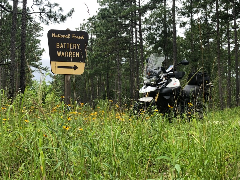 Since I moved to Charleston last fall I’ve ridden the forest service roads and trails in Francis Marion National Forest only a few times and didn’t really know to much about the area. After some internet searches on new areas to ride in the forest the location Battery Warren kept popping up. Now I have a motor vehicle usage map for the area however, it doesn’t have specific locations on it, only roads and trails. Eventually I was able to figure out the general area Battery Warren was located in by using the National Forest Service’s website for the area as well as Google Earth. A lot of this information was fairly vague and their were no clear cut directions to get to it, so in true adventure motorcycle fashion Spitfire and I would search for it on our own.