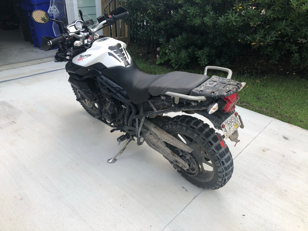 It wasn’t until I picked up the Triumph that I really started to get serious on what to use for chain lube. The Triumph Tiger uses modern X ring or O ring chains that are preloaded with grease in the rollers and don’t need a thick lube. I asked several local riders and it seemed like it was a mix of using a light coating of gear oil or a thicker tacky compound. Personally, I felt kind of lost so I turned to the one person that could point me in the right direction, Ari Henning. Some of you may know of Ari through his work at writing for Motorcyclist magazine or from his video series where he’s often paired with Zach Courts and they discuss several different motorcycle related topics. During the pandemic Ari has had a weekly stream on Instagram and YouTube through Revzilla’s Common Thread where he’s discussed numerous maintenance topics. With a background like his I figured he might offer some great advice. I sent Ari a message on Instagram outlining my issue and he came back with the recommendation of using Motul C3 off road chain lube. Ari mentioned that the C3 lube is thinner and intended to fling a bit so it doesn’t attract sand or grime on the chain and that it would be perfect for an dual sport or adventure bike.