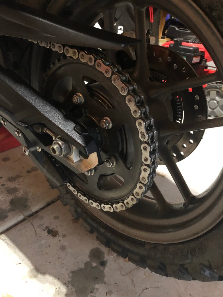 The chain and sprockets are one of the most important parts of a motorcycle. They essentially put power to ground and allow the motorcycle to move. I’m not going into any crazy engineering on how the system works but it is fairly simple and very reliable. However, this system has to be maintained like everything else on a motorcycle and they can wear out over time. While living in Colorado and Minnesota fine dust was often the biggest enemy to chain and sprockets and for the most part you could get away with using a thicker chain lube. I preferred Motul’s C5 chain paste, it went on fairly easy and the attached applicator brush kept everything nice and clean and you didn’t have to worry about excess lube getting all over your bike. The C5 chain paste had very good longevity and it didn’t really seem to collect to much dirt or grime. It was my go to lube for my Yamaha XT225 as well as my Kawasaki KLR 650 since they had older style chains. For riding in Colorado and Minnesota it was great but once I moved to South Carolina I noticed that its thick nature attracted a ton of sand and we all know how abrasive and rough sand can be on metal parts.
