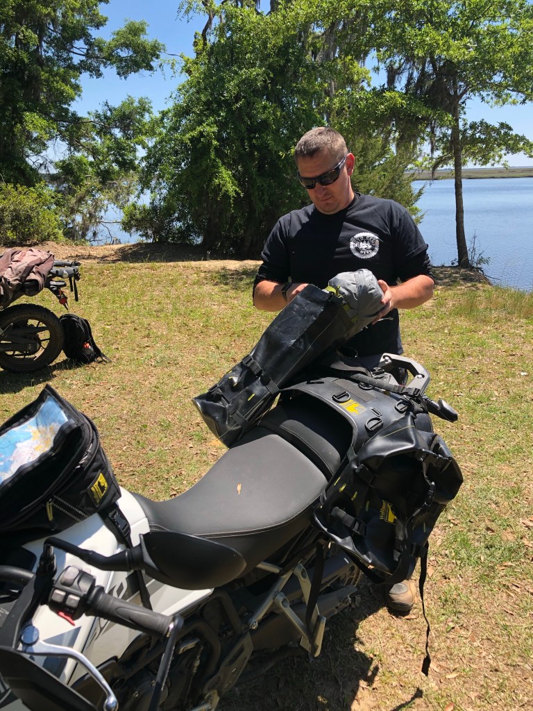 So far, I’ve only been able to spend a single night in the Blacktail 2 and compared to tents that I’ve used in the past I was quite impressed. It did take me a little longer than I liked to set it up since I was unfamiliar with it but once I figured out how the vestibule goes on it was fairly easy. Setting it up for the first time took me around twenty minutes and I’m confident with repeated use this spring and summer I’ll get it down to ten to fifteen minutes. Inside the tent I had plenty of space and the ceiling pocket was great to store my phone and other small items for the night. The vestibule provided me with plenty of storage area for my riding gear and my Wolfman soft luggage. I did notice that the vestibule has two air vents that pop open on the top for additional ventilation but they are angled in a way where water can’t get in if it does rain. The next morning when it came time to pack up, the Blacktail 2 folded up quite nicely and fit perfectly back into its stuff sack.