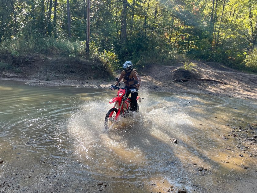The routes that I would ride the Beta on for the weekend varied in terrain but were mostly rocky with steep inclines and declines along with a few water crossings thrown in for a challenge. The Beta took on everything I threw at it very well. In some tight single-track sections, it was very nimble and on steep inclines it had plenty of power to get up to the top of them. The biggest challenge for me as a rider were water crossings, since I don’t really have to many in the Low Country of South Carolina. However, this gave me the opportunity to test the dual mapping system that the Beta RS’s come with. The dual mapping system gives the bike a dry mode and a wet mode and what it really does is it limits how much power and torque the bike puts out…in wet mode it’s kind of like a cross between traction control and rain mode on a newer motorcycle. Riding in wet mode, I found that I had plenty of control of the Beta going through water crossings and I even used it for one route that was up a steep rocky incline that was covered in slippery moss.