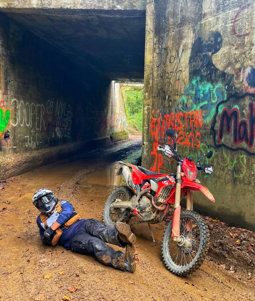 For this adventure, I jumped on a 2024 Beta 390 RS. This bike is branded by Beta as “the most offroad worthy dual sport on the market” and on paper it looks like it. Weighing in at 241 pounds and with a 390cc four stroke engine this bike has plenty of power and can put it to the ground with a six-speed gearbox mated to a hydraulic clutch. As for suspension, the 390 RS has 48mm fully adjustable Sach’s open cartridge forks in the front with a fully adjustable Sach’s shock in the rear. To slow this monster down you have a 260mm floating rotor in the front and a 240mm rotor in the back. On the electronics side the Beta 390 RS comes equipped with a Trailtech Voyager GPS navigation system and a unique dual mapping switch on the fly system. Ok, so what does all of this mean…well the Beta 390 RS is one of those bikes that can go from the show room right to a race. It’s built with high end components, so make no mistake this is a race bike that is set up for dual sport riding.
